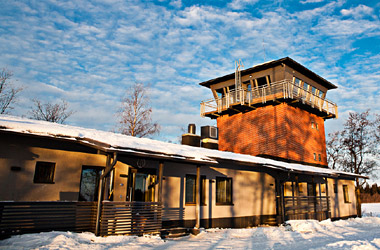 viihtyisä niemi, torni 12 metrin korkeudessa ja ikkunat kaikkiin